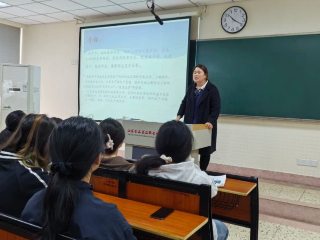 12:30,徐州正昌饲料有限公司安环办主任许平平开启《超越自我,越努力越幸运》主题分享。她以三个小时的深度交流,结合自身从生产内勤到管理层的成长历程,提出"人才与人财"的职业发展理念,独创的"一、二、三原理"时间管理法引发在场学生强烈共鸣。