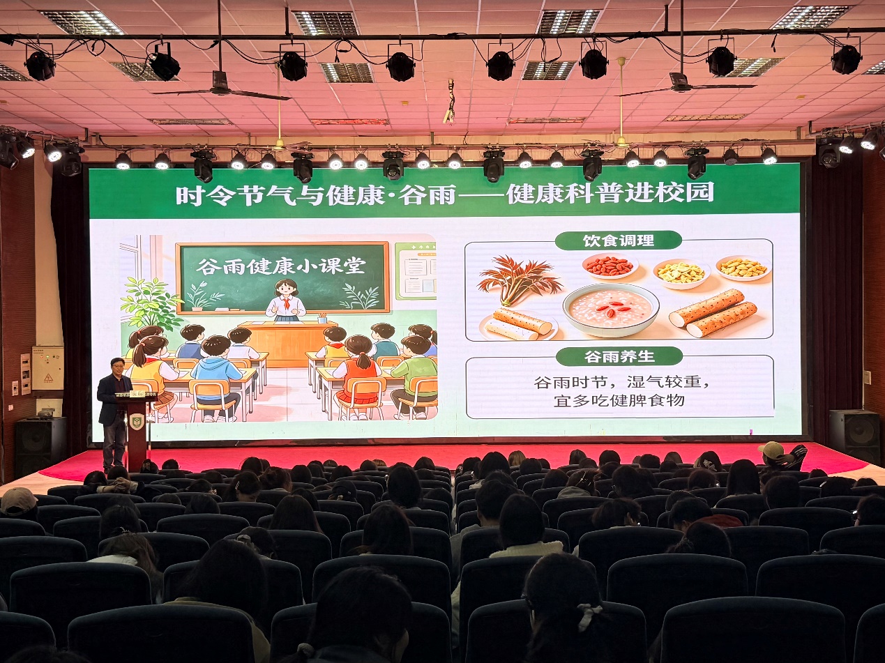 随后,淮安市第一人民医院营养科主任沈旸围绕“大学生营养与健康”主题,从科学膳食结构、合理营养搭配、规律作息及适量运动等方面进行了系统讲解。讲座内容贴近学生实际,通俗易懂、生动实用,使同学们进一步认识到健康生活方式对学习成长的重要意义。